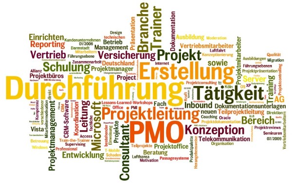 Hier sehen Sie meine Kompetenzen und Projekterfahrungen als Cloud-Tag-Grafik dargestellt: